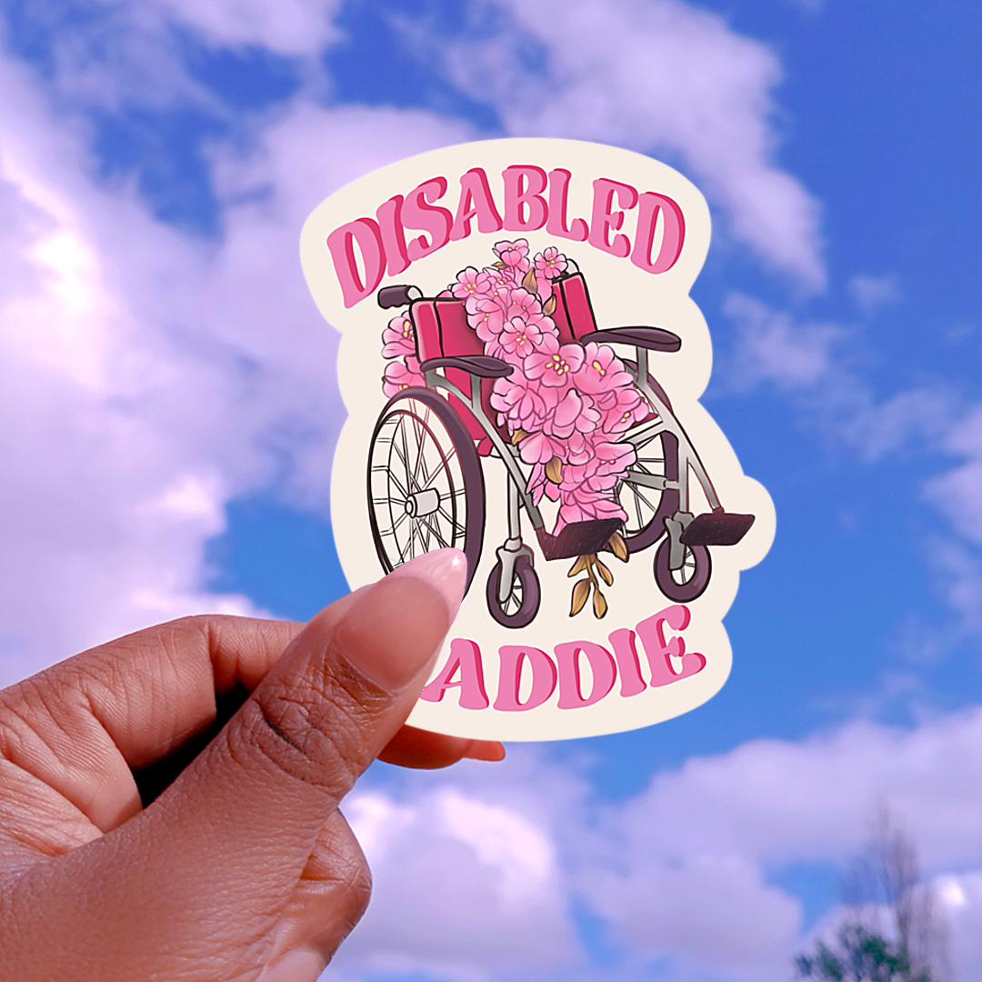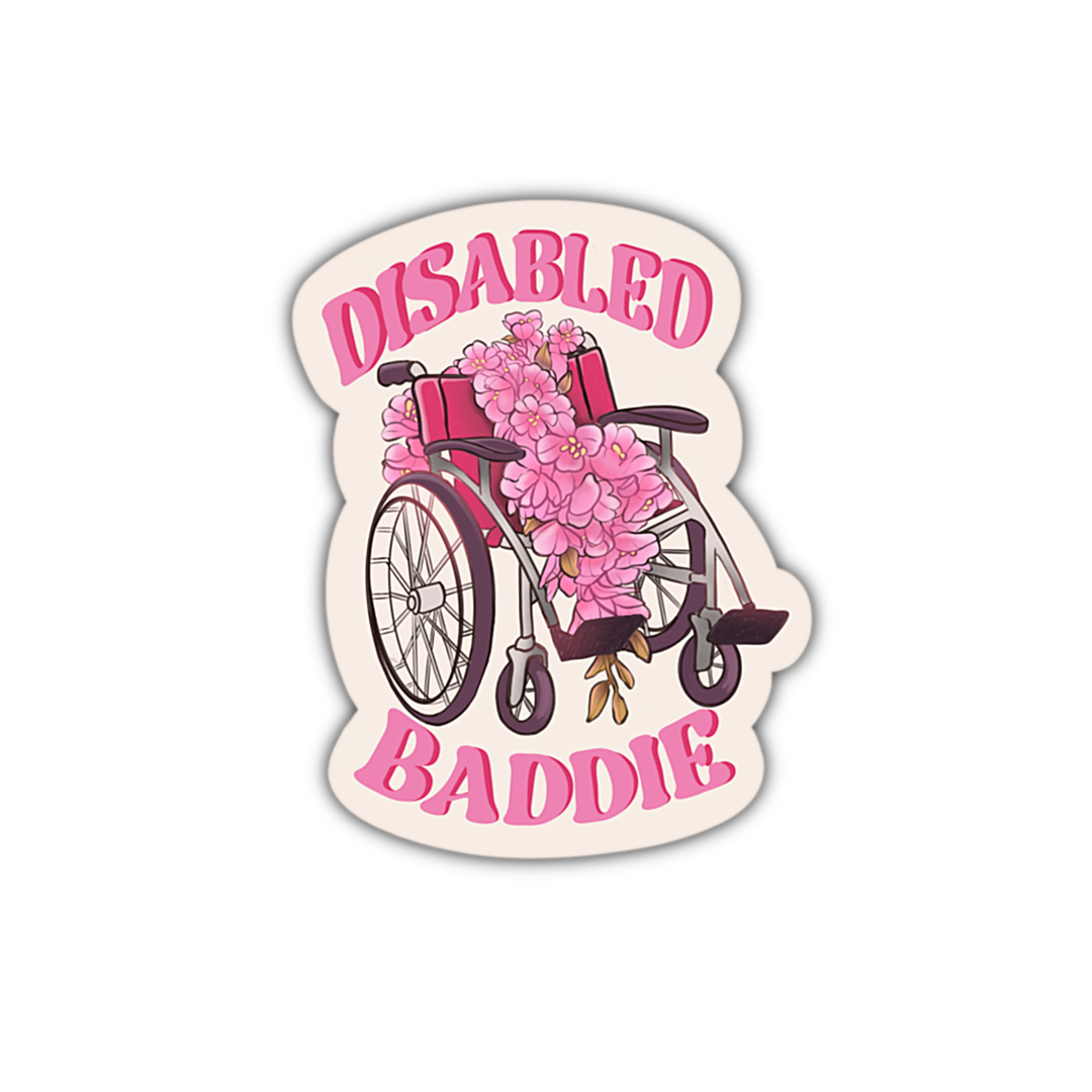 "Stick it to the norm with our Disabled Baddie sticker. Waterproof and full of rebel sass, this sticker showcases that even with a disability, you're still a baddie. Peel, stick, and show the world your unique bad-assery. (Warning: high chance of sticker-induced confidence boost!) "