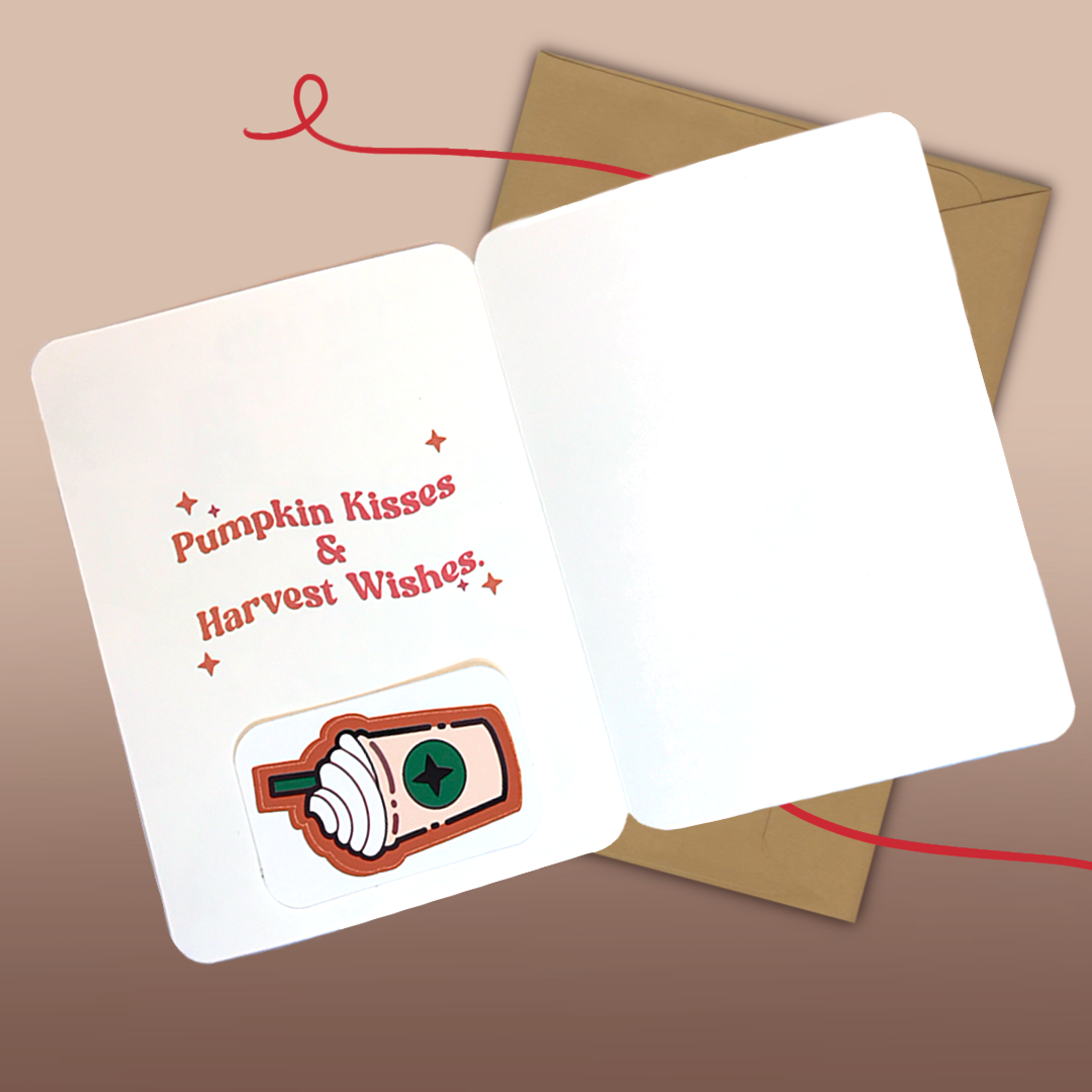 Celebrate the arrival of fall with our beautifully designed greeting card! Handcrafted in our home studio, this card comes with a small, waterproof sticker, envelope, and string for wrapping. Perfect for sending warm wishes to loved ones. (Be-leaf us, they'll love it!)