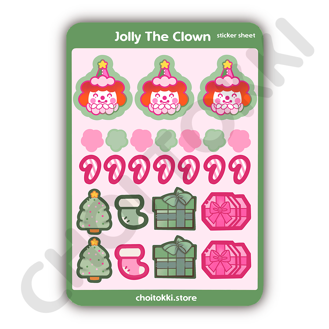 Introducing Jolly the clown matte sticker sheet, perfect for adding a touch of whimsy to your life. This quirky sticker sheet features our beloved Jolly character and is sure to bring a smile to anyone's face. Add some fun to your day with Jolly the clown!