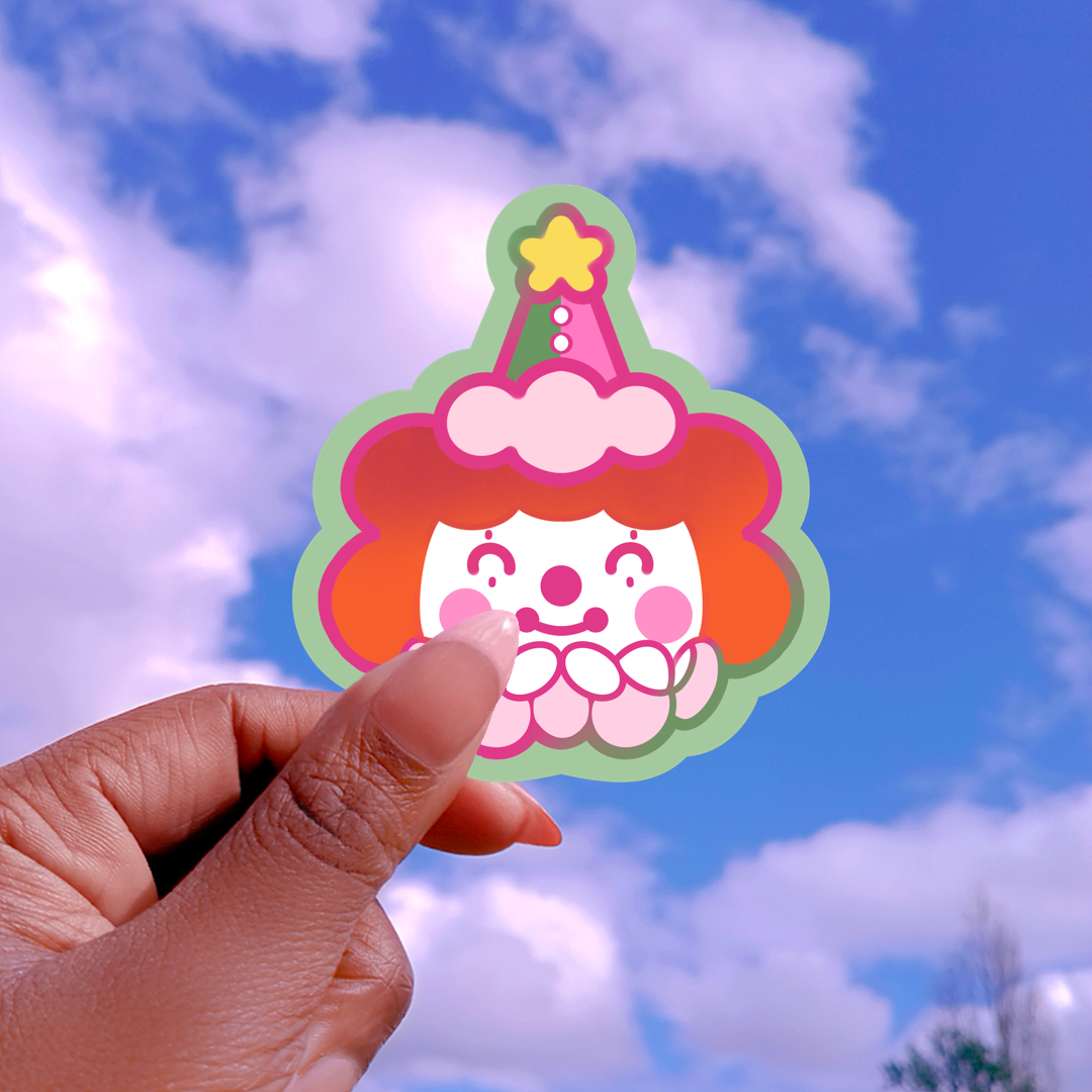 Bring some joy and whimsy to your world with Jolly the Clown sticker! Perfect for any surface, this playful sticker will put a smile on your face (and those around you). Spread some positivity and silliness wherever you go with Jolly the Clown sticker.