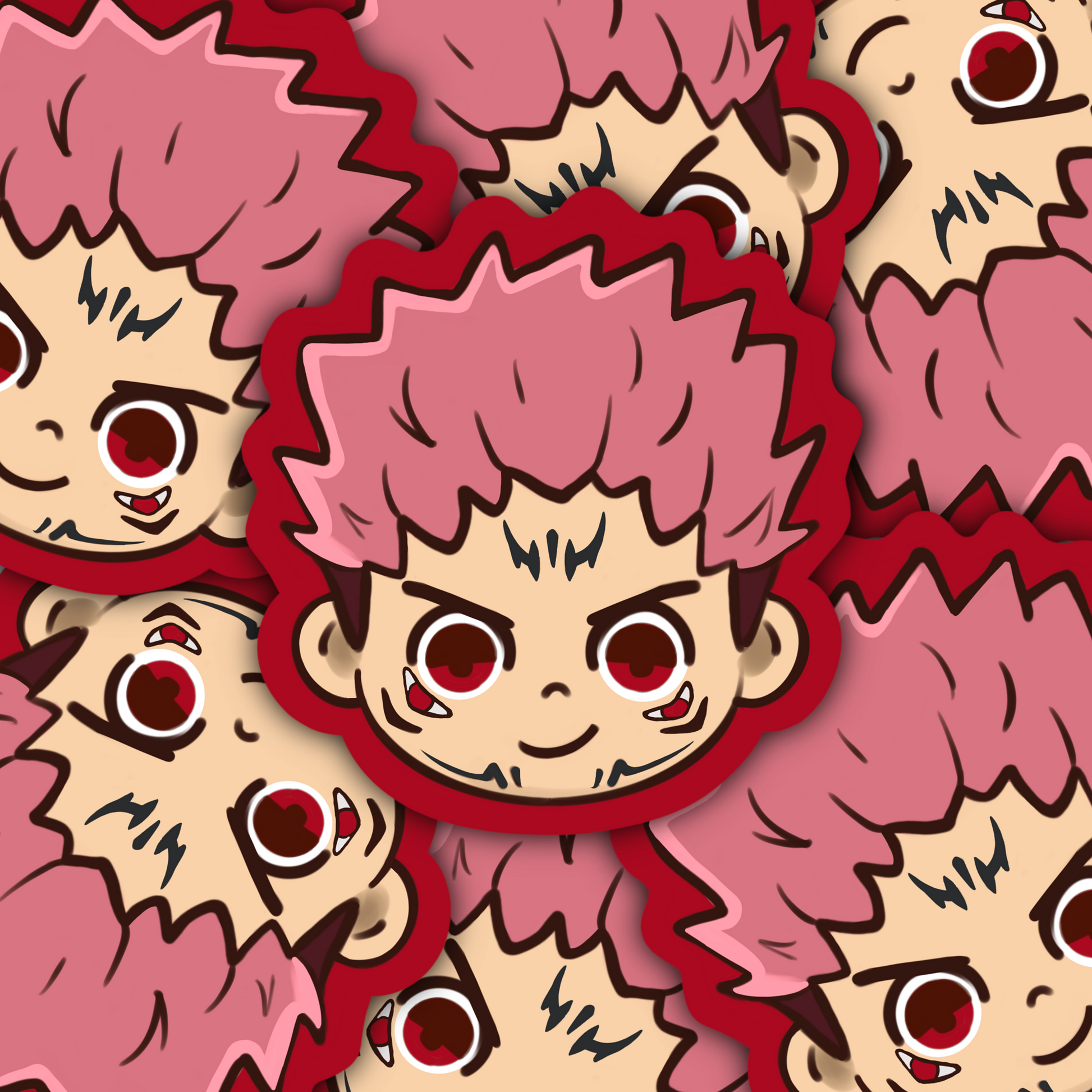 Introducing the Sukuna Jujustu kaisen sticker - a must-have for any anime fan! Add a touch of the supernatural to your belongings with this quirky sticker featuring Sukuna, the powerful and mysterious character from Jujustu Kaisen. Perfect for laptops, water bottles, and more. (Limited stock, so get it while you can!)