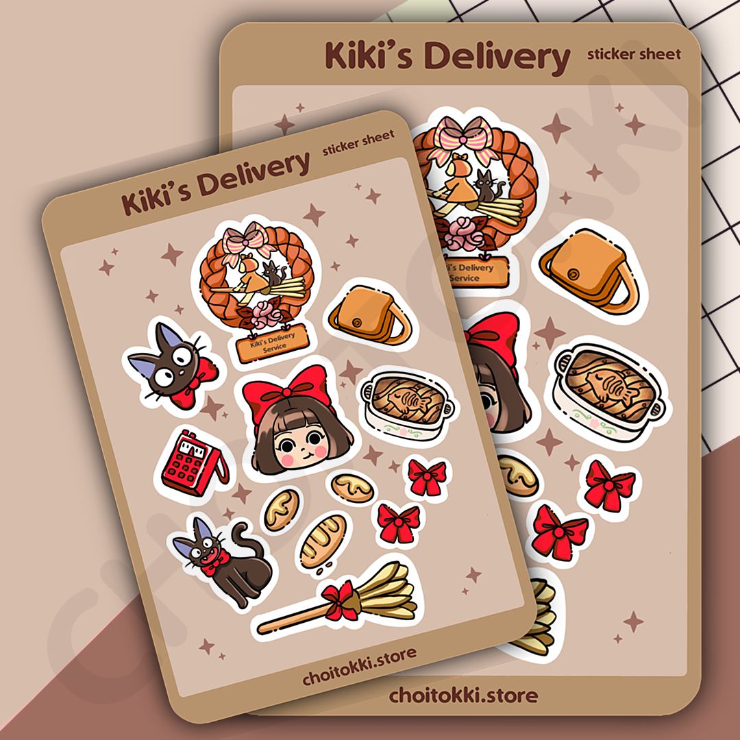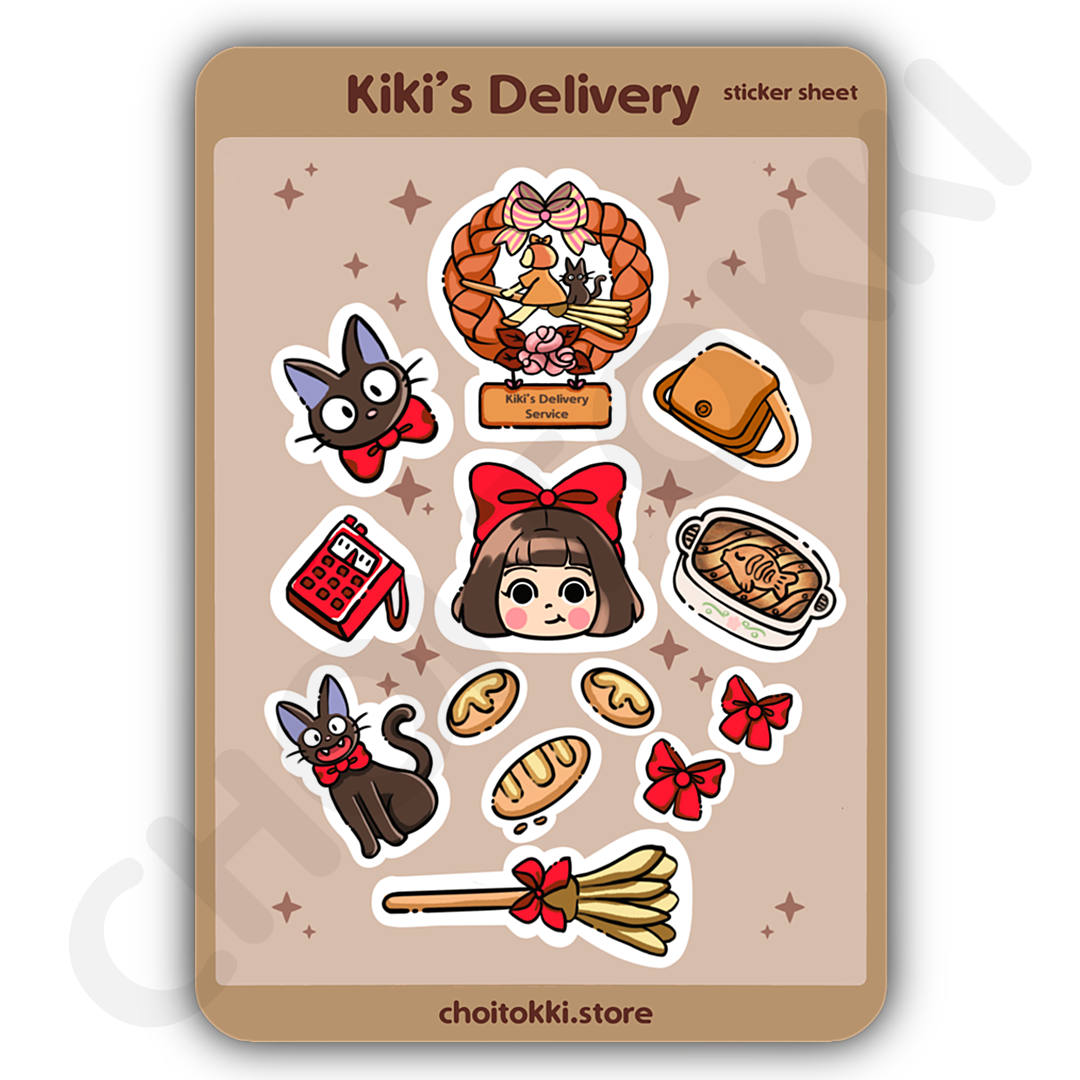 This matte sticker sheet features illustrations from Kiki's Delivery Service, perfect for decorating your personal items! Add a touch of whimsy and nostalgia to your belongings with this adorable sticker sheet.