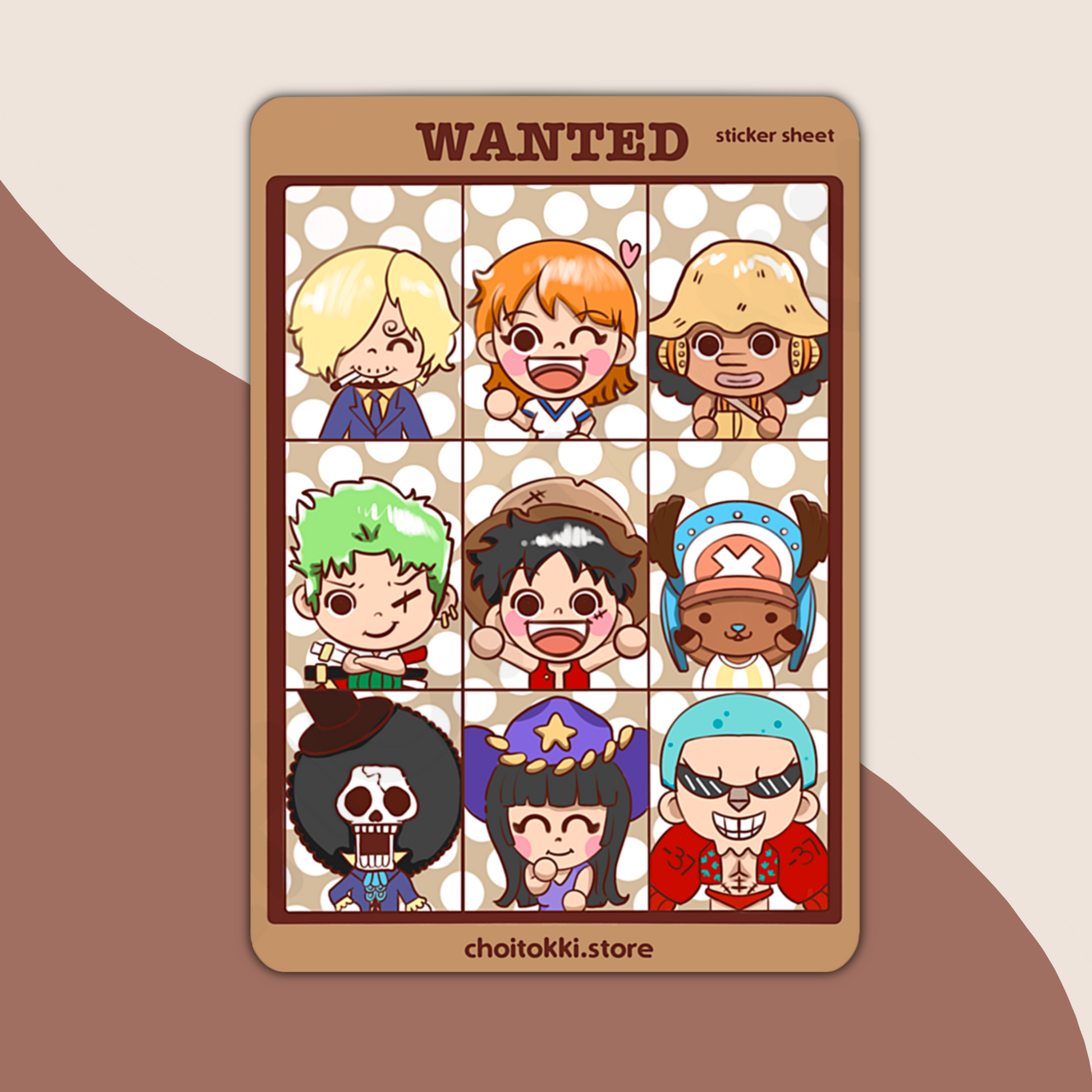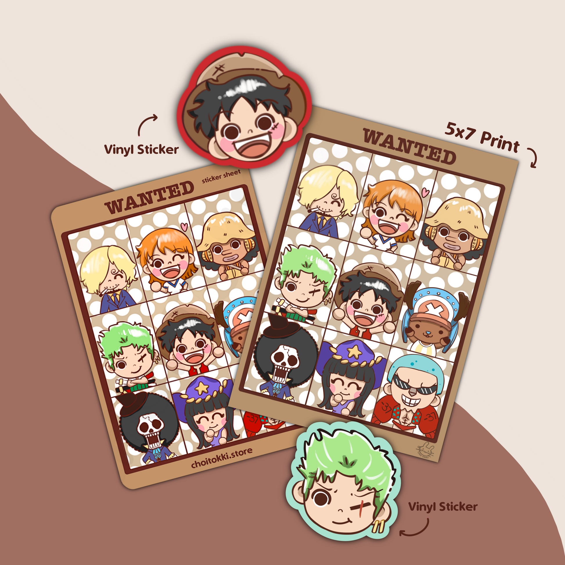 "Get ready to set sail with the WANTED - Collection! This epic set includes a 5 x 7 print, a sticker sheet, and the choice of two vinyl stickers. With most one piece characters featured, you'll have all the essentials for your collection. Don't miss out on this must-have for any fan!" 🏴☠️